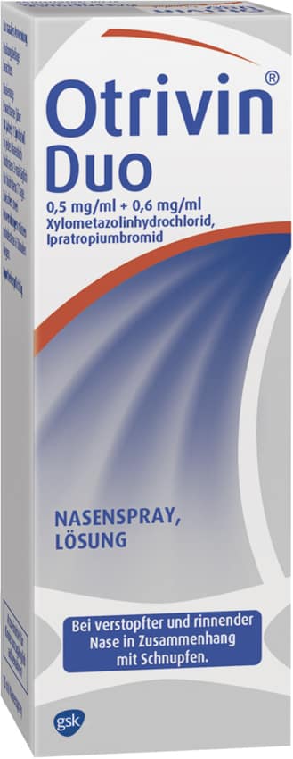 Otrivin Duo ist ein Kombinations-Arzneimittel bestehend aus zwei verschiedenen Wirkstoffen. Einer der Wirkstoffe hilft gegen rinnende Nase, der andere hat eine abschwellende Wirkung.