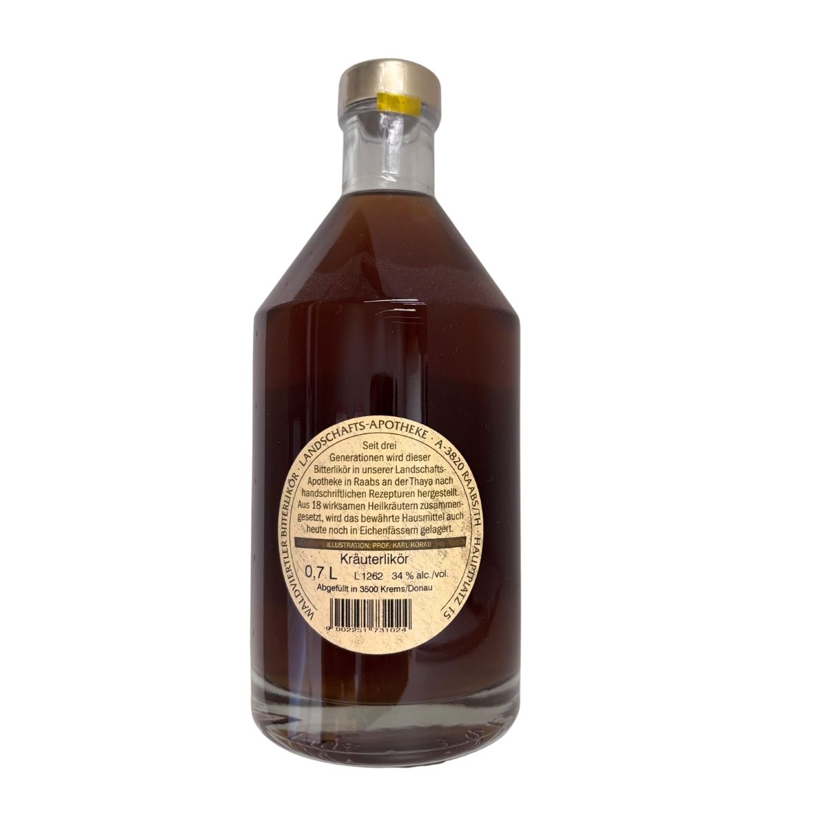 Ein von Generationen vererbtes Familienrezept von 18 verschiedenen Heilkräutern bildet die Basis des Waldviertler Bitterlikörs. Weiters enthalten: Zucker, 32,7% alc/vol.