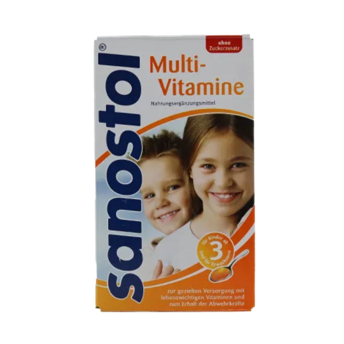 Sanostol® Multivitaminsaft ohne Zuckerzusatz für Kinder ab 3 Jahre, Jugendliche und Erwachsene.