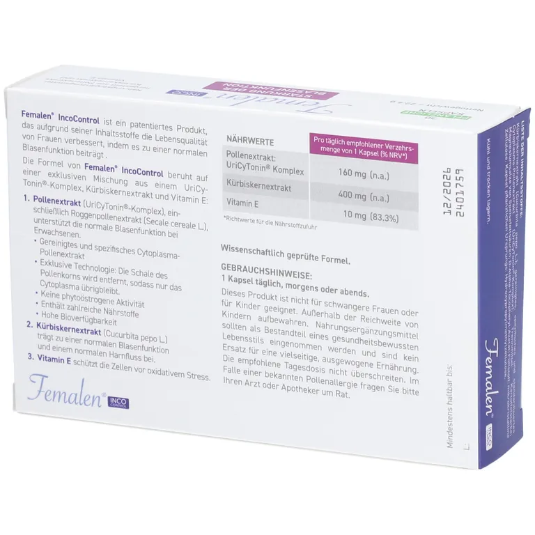 Femalen® Inco Control lindert Blasenprobleme auf Basis folgender Inhaltsstoffe: