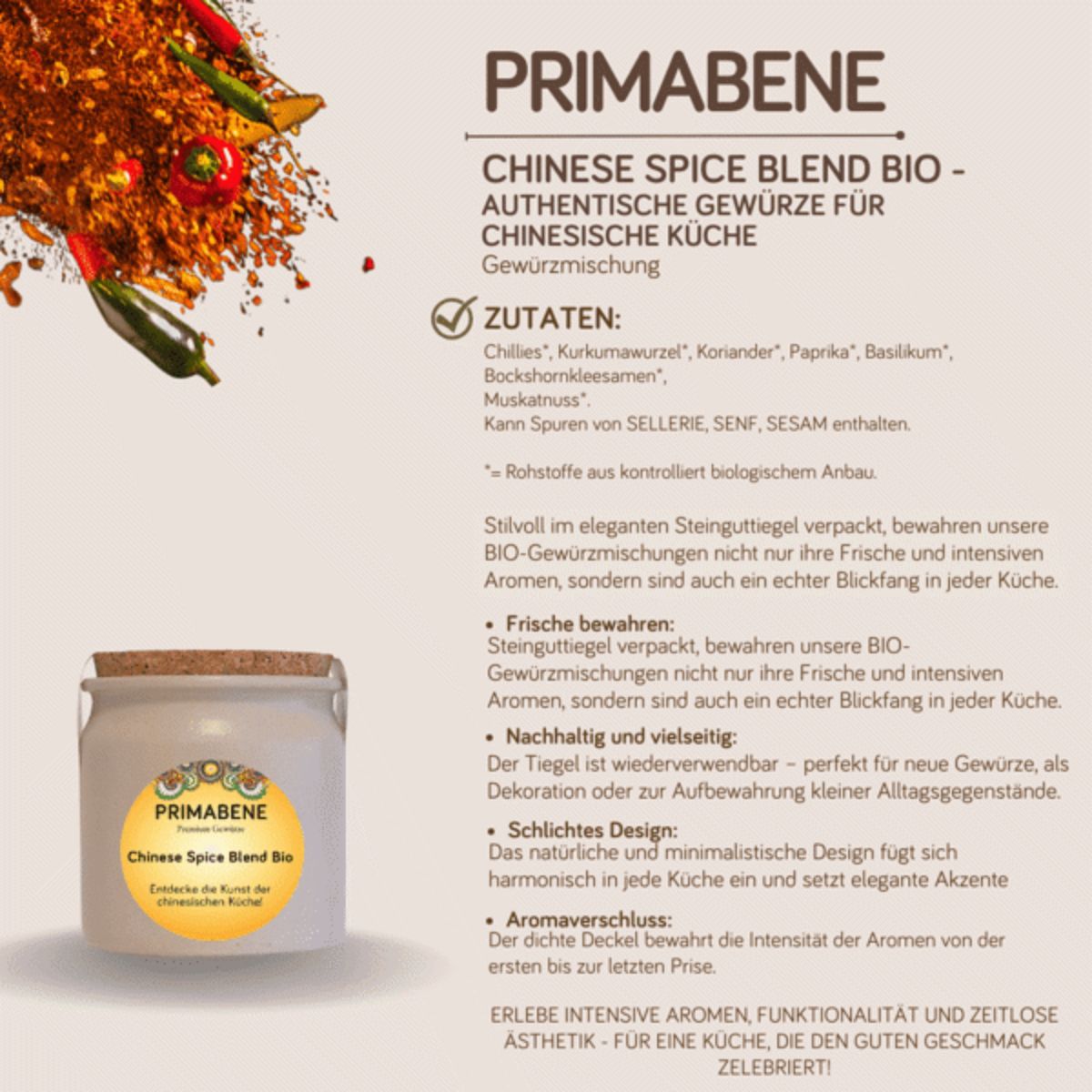 Erlebe mit PRIMABENE® Chinese Spice Blend Bio und der
