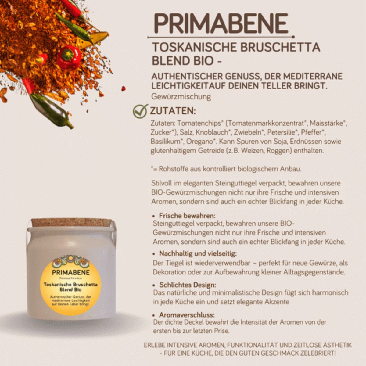 fruchtig-aromatische PRIMABENE® Gewürzzubereitung aus Tomatenchips,