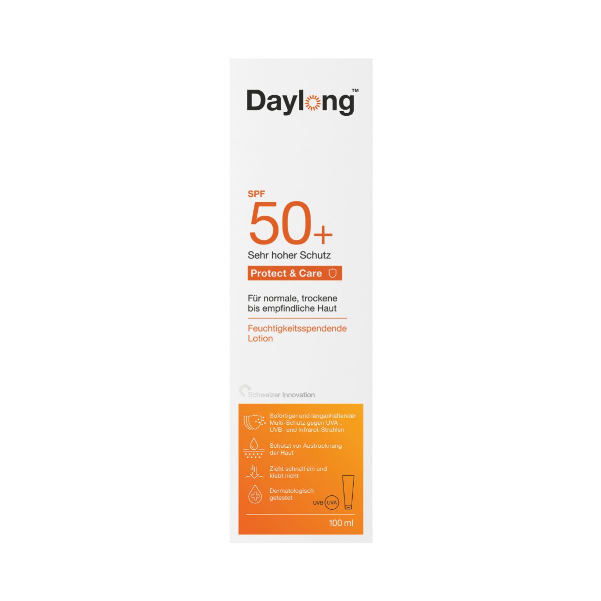 Starker und komfortabler Schutz – die Daylong liposomale Lotion SPF 50+. Photostabile Breitbandfilter schützen die Haut vor UVA-, UVB- und IR-Strahlen und beugen damit auch Hautalterung vor. Die Filter verteilen sich besonders schnell und gleichmässig in der Haut dank der liposomalen Zusammensetzung (hautähnlicher Aufbau der Moleküle). Die Sonnenlotion zieht schnell ein. Dank Aloe Vera und Vitamin E spendet die nicht fettende Lotion Ihrer Haut Feuchtigkeit über 24 Stunden – eine zusätzliche Feuchtigkeitspflege ist also nicht notwendig.