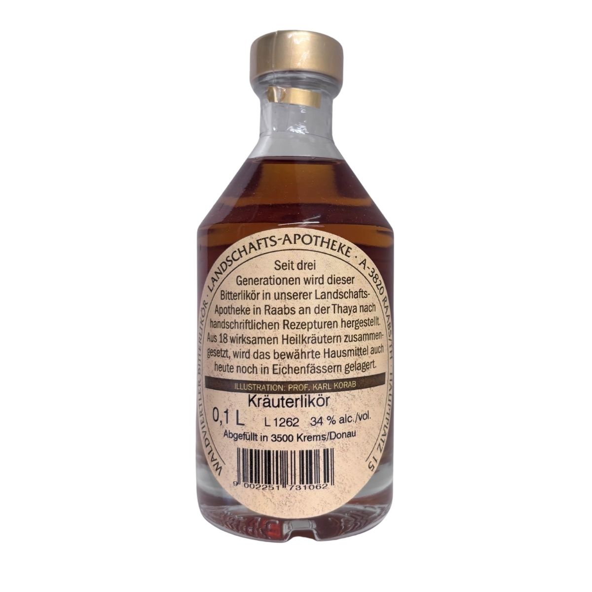 Abgefüllt in 3500 Krems/Donau, Inhalt: 0,2L - 32,7% alc/vol, AUSSERHALB DER REICHWEITE VON KINDERN AUFBEWAHREN, von übermäßigem Verzehr wird abgeraten, der Käufer/in muss das 18.Lebensjahr vollendet haben.